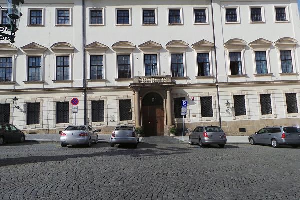 Kasárny a náš domov. Ta horní okna byla naše. Byl tady krásnej výhled na celou Prahu s Petřínem na protilehlé stráni.